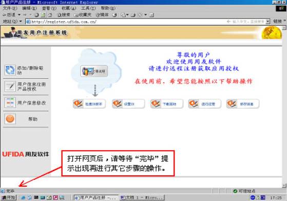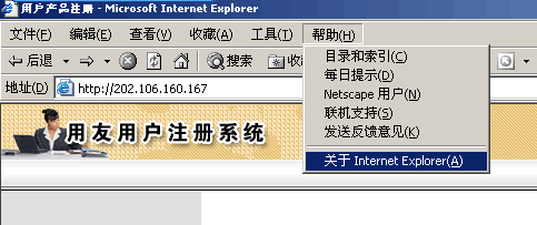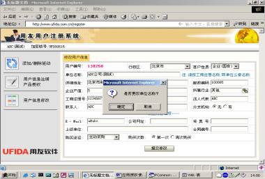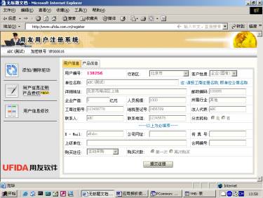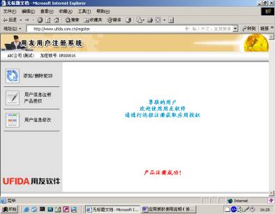 IE登陆http://register.yonyou.com/进入“用友用户注册系统”,进行用友软件远程注册,获取产品授权。