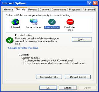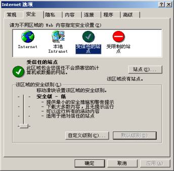 修改IE受信任站点的安全级别(此项可选:工具—>Internet选项—>
