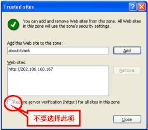将此站点加入IE受信任站点:(工具—>Internet选项->安全)