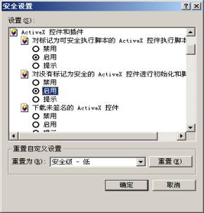 安全—受信任站点—> 自定义级别—>启用ActiveX控件或插件)