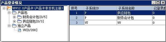 在产品登录情况的左树根节点显示“产品卡非本机注册”,如下图。